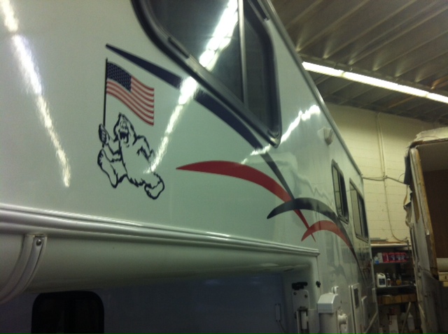 This beautiful camper and it’s nice owners came all the way from Nevada, for a face lift! New roof, seals, decals, polishing and much more… some renovations to make this Bigfoot like new again.