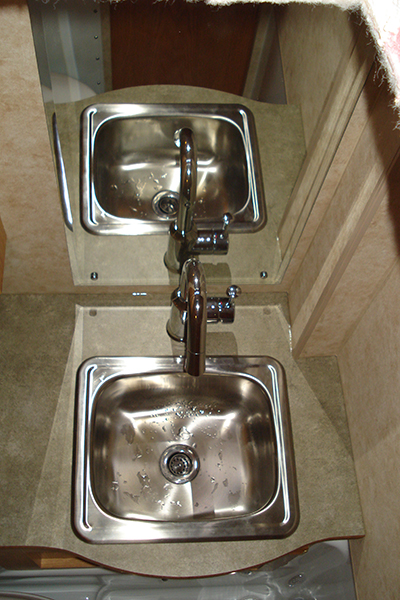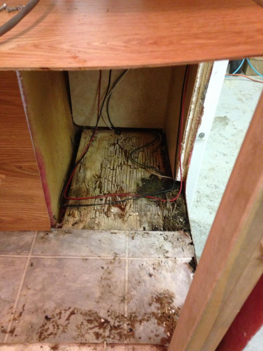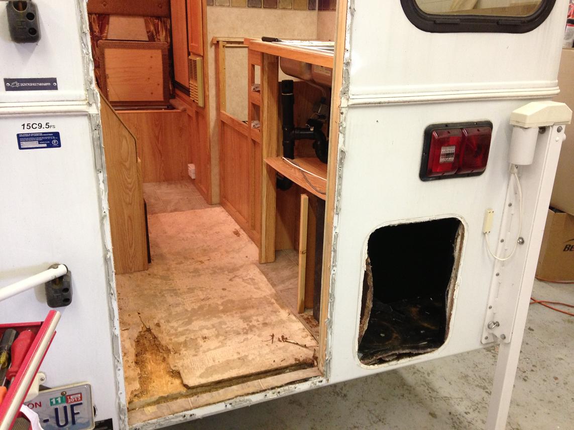 Full renovation on this beauty! Water found it’s way in through a crack in the fiberglass, causing the floor to rot. Gilmay RV fixed the floor & resealed the whole unit to prevent future water.
